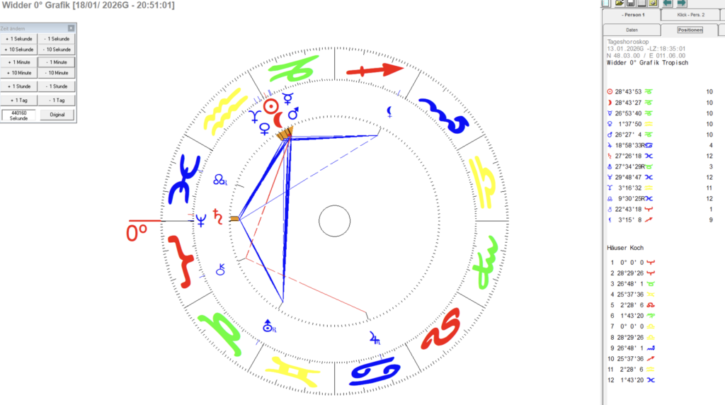 Auf 28° im Zeichen Steinbock – da geht es u.a. viel um Verantwortung und dass sich die Dinge nicht alle von alleine ordnen.