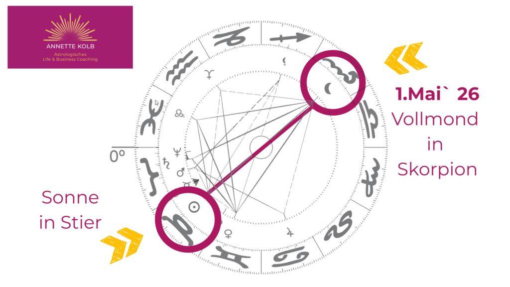 Am 1. Mai ist Vollmond auf 11° im Zeichen Skorpion. Das ist der erste von zwei Vollmonden in Monat Mai.