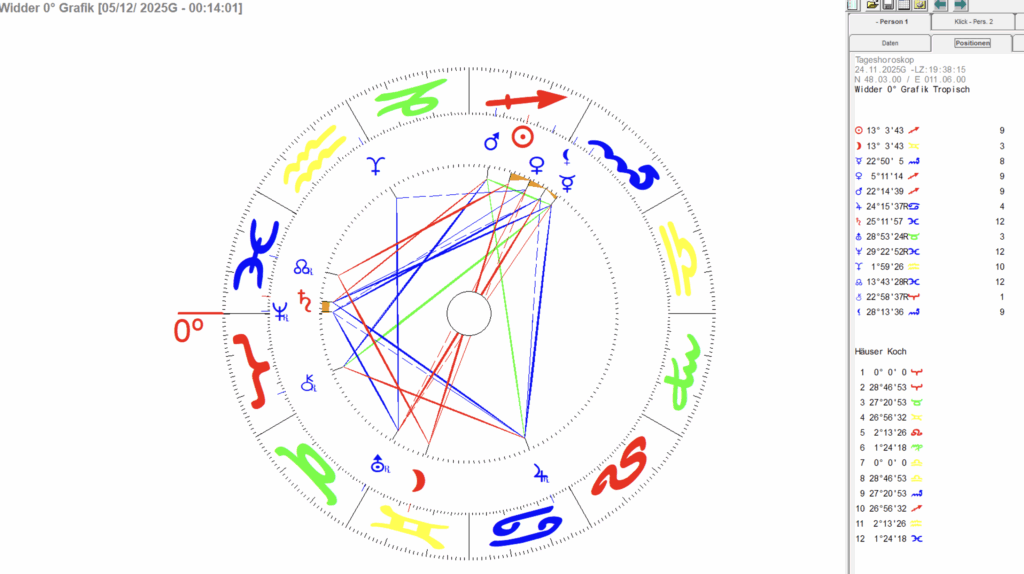 Am 5. Dezember haben wir den letzten Vollmond des Jahres – im Zeichen Zwillinge auf 13°. Kurz nach Mitternacht wird er exakt sein.
